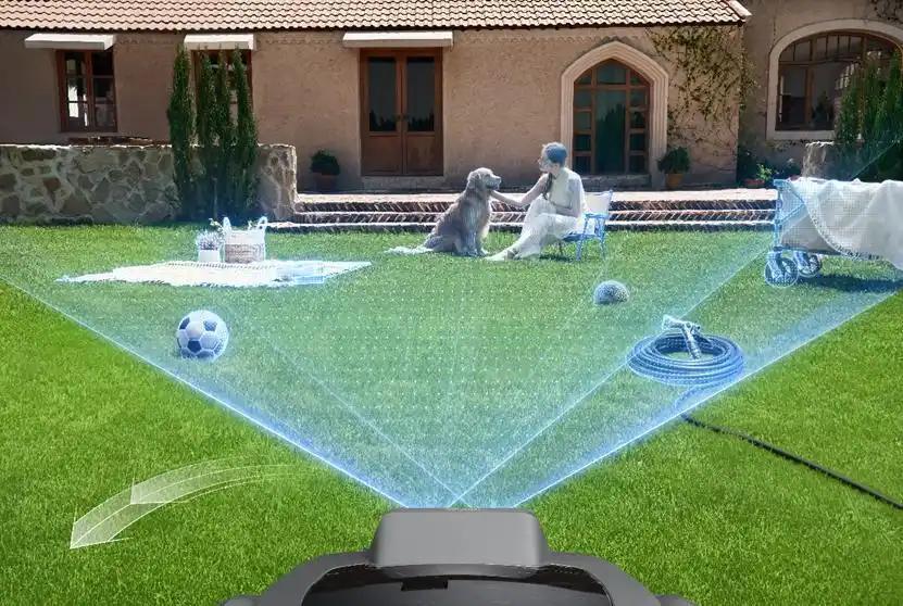 MOVA选择的是另一条路:将无人驾驶领域的多传感器融合与视觉SLAM技术下放到庭院场景。其AI双目视觉系统结合3D激光雷达,能够在无埋线、无基站的前提下完成建图与动态避障,本质上解决的是「开箱即用」的问题。