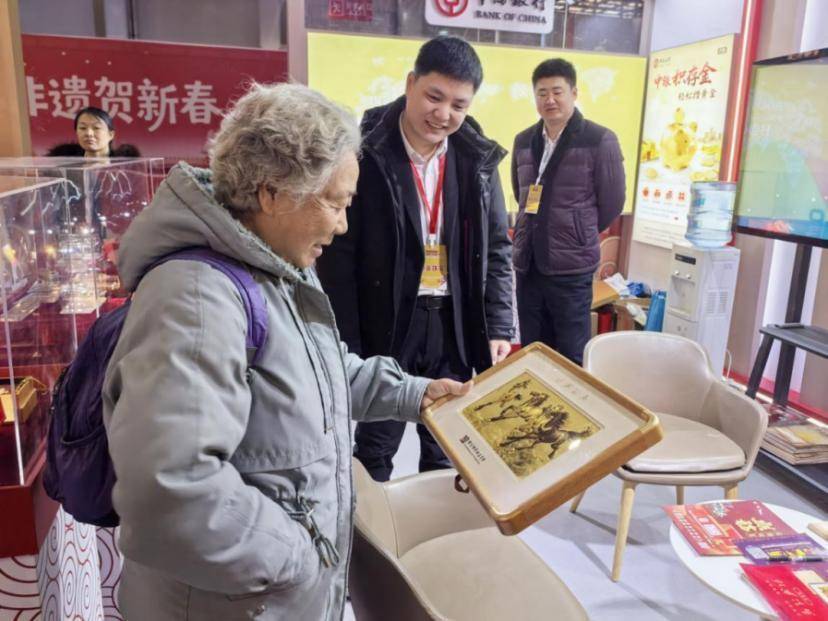 在廊坊国际年货节期间,河北中行设立贵金属展位,展示投资金条、生肖金饰、贺岁摆件等产品,并提供金价优惠、抽奖活动等互动体验,吸引了不少市民前来咨询选购。